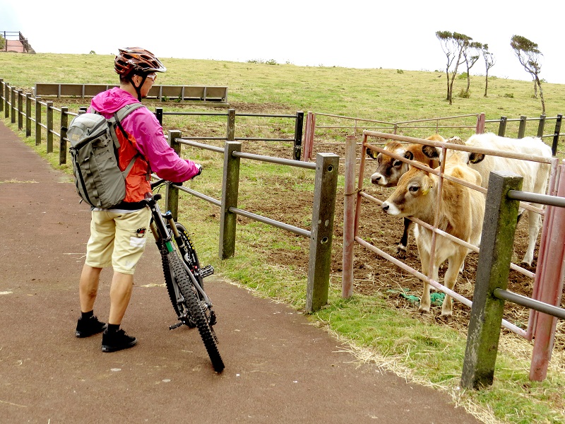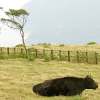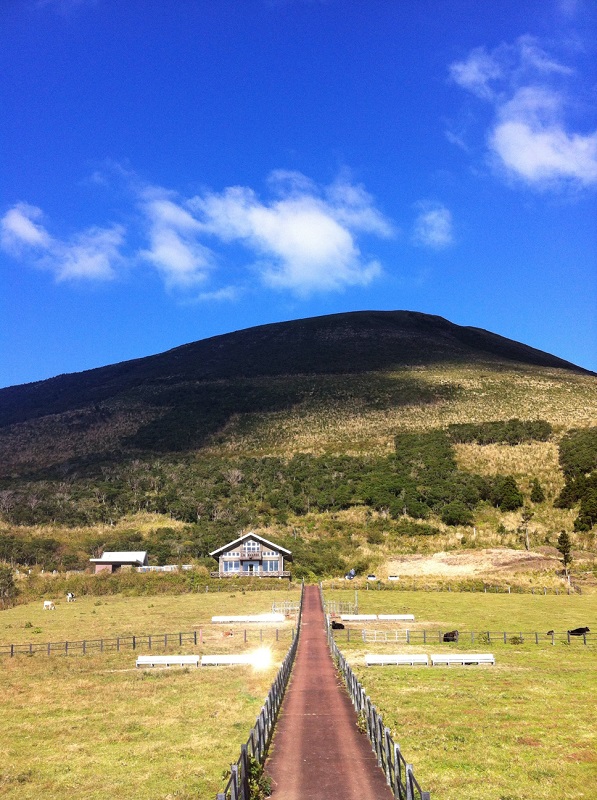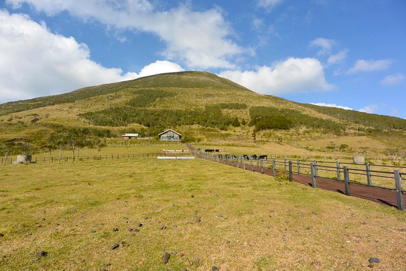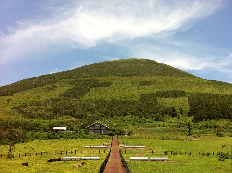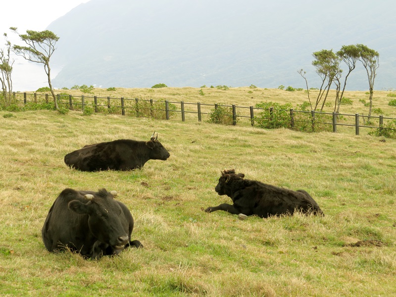 『八丈富士登山道』を登り切り、中腹をぐるりと回る『八丈富士鉢巻道路』の後半にある景色の良い牧場です。少しコースを外れますが、トイレ休憩や記念撮影に好適。のんびりと草を食む牛たちに癒されてください。